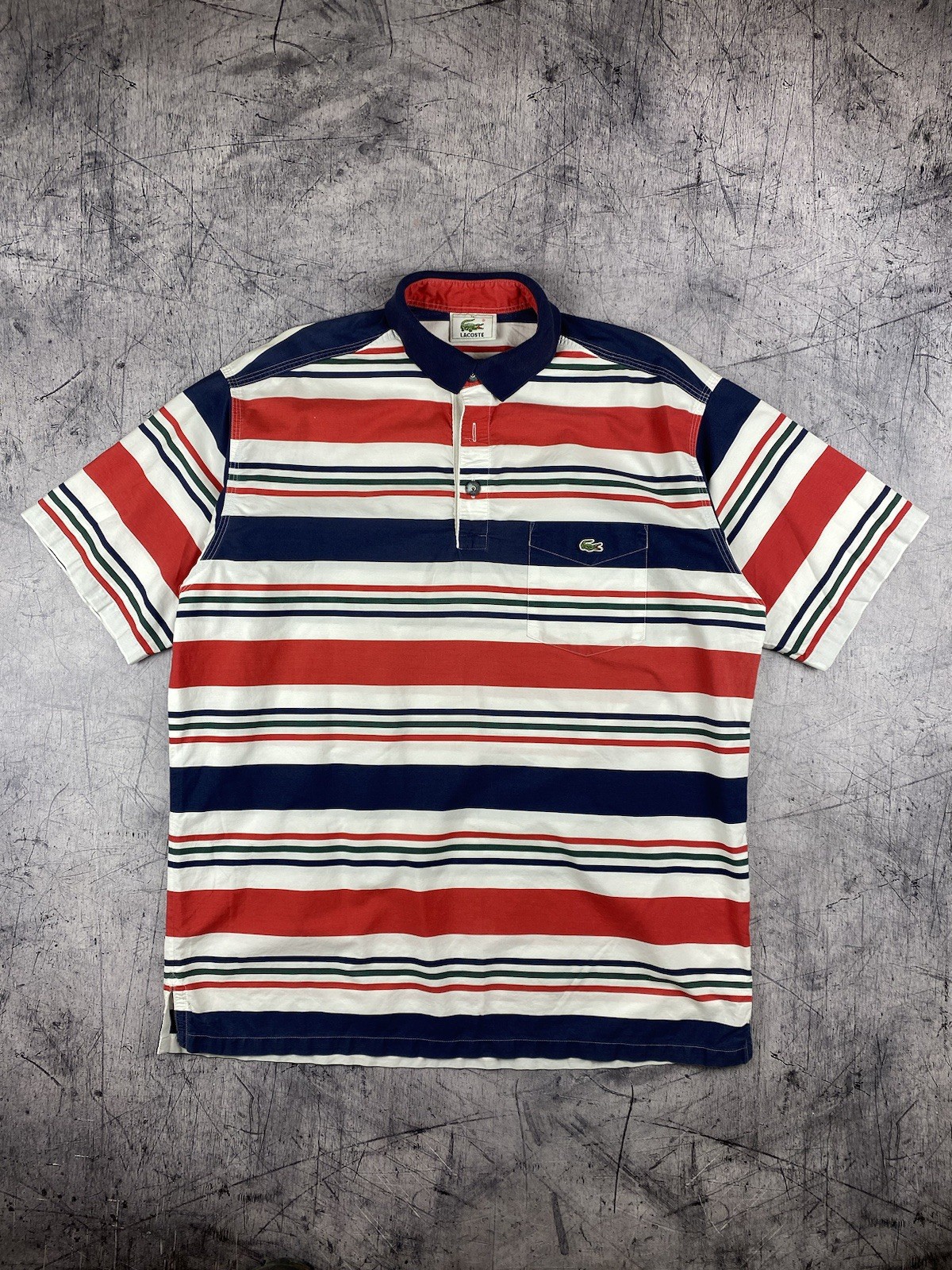 Vintage Lacoste Shirt Extra Large gestreift mehrfarbig Polo Tasche Tennis Vor...