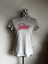 Puma Damen T-Shirt hellblau Baumwolle Jersey Logo Tape Ärmel Relaxed XL