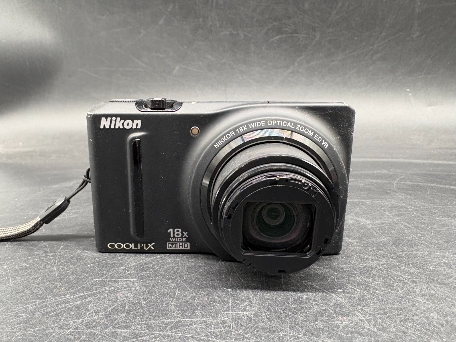 Nikon Coolpix S9100 BLACK Schwarz Kompakte Digitalkamera 18x Zoom Objetivschaden
