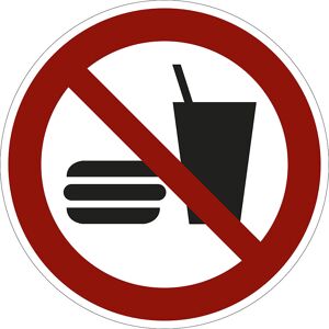 Verbotszeichen, Essen und Trinken verboten, VE 10 Stk, Folie, Ø 200 mm. Anlieferung = montiert. Schilderart = Standard. Norm = ASR A1.3 / ISO 7010. Material = Folie. Motiv = Essen und Trinken verboten. Durchmesser = 200 mm. Eigenschaft = selbstklebend. Produkttyp = Verbotskennzeichen. Für die optimale Sicherung Ihres Betriebsgeländes. Gemäß ASR A1.3 / ISO 7010. In verschiedenen Materialien erhältlich. Ideal, um Gefahrenstellen zu kennzeichnen. UV-beständig - für innen und außen geeignet.