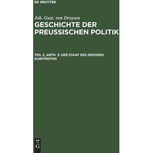 Brand : de Gruyter, Binding : hardcover, Edition : 2. Aufl. Reprint 2018, Label : Der Staat des grossen Kurfürsten (Joh. Gust. von Droysen : Geschichte der preußischen Politik, Band 3), medium : hardcover, numberOfPages : 648, publicationDate : 1872-04-01, releaseDate : 1872-04-01, languages : german, ISBN : 3111299457