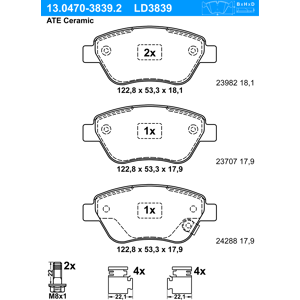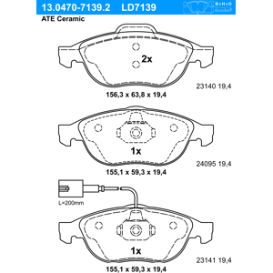 ATE Bremsbelagsatz, Scheibenbremse ATE Ceramic Ergänzungsartikel/Ergänzende Info:mit Zubehör Ergänzungsartikel/Ergänzende Info 2:mit Bremssattelschrauben Breite [mm]:146,0 mm Höhe [mm]:71,5 mm Anzahl der Schrauben:4 MAPP-Code vorhanden Verschleißwarnkontakt:für Verschleißwarnanzeiger vorbereitet Zulässig bis Fahrzeugleistung [kW]:225 kW Abmessungen beachten Dicke/Stärke [mm]:20,3 mm Verschleißwarnkontakt:exkl. Verschleißwarnkontakt Prüfzeichen:E1 90R-02A0258/0330 Bremssystem:Lucas / TRW Artikelnummer des empfohlenen Zubehörs:24.8190-0410.2Menge 1 entspricht einem Satz (4 Bremsbeläge für links UND rechts) , u.a. für Mercedes-Benz C-Klasse (W204), 2143 cm³, 120 PS (88 kW), 4/2010 bis 3/2014, KBA-Nr: 1313BPCMercedes-Benz C-Klasse (W204), 2143 cm³, 136 PS (100 kW), 11/2009 bis 3/2014, KBA-Nr: 1313ABEMercedes-Benz C-Klasse (S204), 2143 cm³, 136 PS (100 kW), 8/2010 bis 8/2014, KBA-Nr: 1313AGWMercedes-Benz C-Klasse (S204), 1796 cm³, 156 PS (115 kW), 11/2009 bis 8/2014, KBA-Nr: 1313AHCMercedes-Benz C-Klasse (C204), 1796 cm³, 156 PS (115 kW), ab 6/2011, KBA-Nr: 1313BTWMercedes-Benz C-Klasse (S204), 2143 cm³, 120 PS (88 kW), 1/2011 bis 8/2014, KBA-Nr: 1313BPDMercedes-Benz C-Klasse (W204), 2148 cm³, 136 PS (100 kW), 1/2007 bis 12/2009, KBA-Nr: 0999BGZMercedes-Benz C-Klasse (W204), 1796 cm³, 156 PS (115 kW), 1/2007 bis 1/2014, KBA-Nr: 0999BEWMercedes-Benz C-Klasse (S204), 1796 cm³, 156 PS (115 kW), 8/2007 bis 8/2014, KBA-Nr: 0999BEXMercedes-Benz C-Klasse (S204), 2148 cm³, 136 PS (100 kW), 8/2007 bis 12/2009, KBA-Nr: 0999BHGMercedes-Benz C-Klasse (W204), 1597 cm³, 156 PS (115 kW), 1/2008 bis 1/2014, KBA-Nr: 1313BCZMercedes-Benz C-Klasse (S204), 1597 cm³, 156 PS (115 kW), 1/2008 bis 8/2014, KBA-Nr: 1313BFYMercedes-Benz C-Klasse (W204), 1796 cm³, 156 PS (115 kW), 1/2007 bis 1/2014, KBA-Nr: 1313ABKMercedes-Benz C-Klasse (C204), 1595 cm³, 156 PS (115 kW), ab 1/2013, KBA-Nr: 1313CNIMercedes-Benz C-Klasse (W204), 1595 cm³, 156 PS (115 kW), 1/2008 bis 1/2014, KBA-Nr: 1313BCZMercedes-Benz C-Klasse (S204), 1595 cm³, 156 PS (115 kW), 2/2012 bis 8/2014, KBA-Nr: 1313BFY , OE-Nummer:METELLI:22-0665-0HELLA PAGID:8DB 355 012-751HELLA:8DB 355 012-751PAGID:T1638REMSA:1301.00TEXTAR:2430692ICER:181821ROADHOUSE:21301.00CIFAM:822-665-0NK:223366FTE:BL2028A4TRW:GDB1736MINTEX:MDB2830JURID:573257JCHELLA PAGID:8DB 355 012-601FERODO:FDB4199HELLA:8DB 355 012-601FEBI BILSTEIN:16749DELPHI:LP2028ZIMMERMANN:24306.205.1BOSCH:0 986 494 667BREMBO:P 50 070ATE:13.0460-2733.2TRW:GDB1736DTEPAGID:T1623TEXTAR:2430682PAGID:T1622QUINTON HAZELL:BP1583