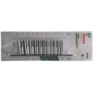 Anzahl der Werkzeuge: 11. Buchse [Zoll]: 1/4. Hersteller: HANS. Herstellernummer: 2611MD. Index: 2611MD. Metergröße [mm]: 10; 11; 12; 13; 14; 4; 5; 6; 7; 8; 9. Profil: 6-eckig. Verpackung / Lagerung: auf einer Schiene / Schiene. Werkzeugtyp: Buchse/Sechskant.