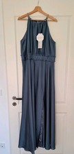 Elegantes Damen-Abendkleid aus fließendem Chiffon mit feiner Struktur Oberteil aus romantischer Spitze U-Boot-Ausschnitt Reißverschluss an der Rückseite 3/4 Ärmel Unifarben Leichtes, glattes Futter Ausgestellter Rockteil Gürtel in schimmernder Satin-Optik an der Mitte Gesamtlänge: ca. 125cm Farbbezeichnung: Future Blue Material: 100% Polyester