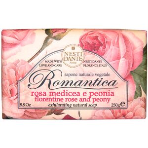 Für die Herstellung der Nesti Dante Seifen werden hochwertige natürliche Inhaltsstoffe verwendet, wie z.B. Oliven-Öl, Palm-Öl oder Kokosnuss-Öl. Auf synthetische Tenside wird bewusst verzichtet. Die liebevolle, handwerkliche Produktion und die hochwertigen Inhaltsstoffe ergeben ein äußerst hochwertiges, pflegendes Endprodukt. Jedes Seifenstück ist mit einem lang anhaltenden, feinen Duft versehen, abgerundet wird jeder Artikel durch die schöne Verpackung.Der verführerische Duft von roten Rosen trifft sich mit den romantischen Nuancen der prachtvollen Pfingstrose und vereint sich zu einem unglaublichen Dufterlebnis in Form von dieser Romantica Seife von Nesti Dante.Anwendung: Die nasse Haut gründlich einseifen und mit klarem Wasser abspülen.