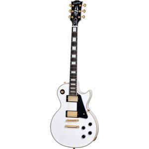 Epiphone Les Paul Custom Alpine White, Inspired by Gibson Custom; E-Gitarre, Inspired by Gibson Custom Shop / Modern Collection, Mahagoni Korpus (Swietenia Macrophylla), Ahorn Decke, Mahagoni Hals (Swietenia Macrophylla), Ebenholz Griffbrett (Diospyros Classiforia), long neck tenon, 22 Bünde, 628mm Mensur, Block Inlays, Split Diamond Heastock Inlay, 7-ply Binding (Vorderseite), 5-ply Binding (Rückseite), 1 x Gibson USA 490R Humbucker in der Hals Position, 1 x Gibson USA 498T Humbucker in der Steg Position, Gold Hardware, Farbe: Alpine White, incl. Case
