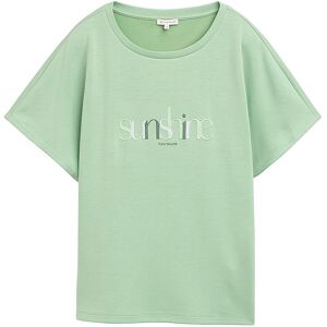 Damen T-Shirt aus Jersey Rundhalsausschnitt Kurzarm Tonales Wording auf der Vorderseite  Unifarben  Gerade Passform  Farbbezeichnung: True Green Material: 53% Modal, 40% Polyester, 7% Elastan