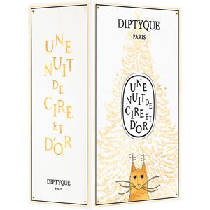 Es war einmal... „Eine Nacht aus Wachs und Gold“, eine Festtagsgeschichte von Diptyque.In diesem Jahr entführt Sie Diptyque in eine zauberhafte Geschichte voller Wunder und Fantasie – mitten in Saint-Germain-des-Prés, wo die Magie der Festtage lebendig wird.Das Künstlertrio hinter dieser Kreation spiegelt die drei Gründer von Diptyque wider: Der zeitgenössische Dichter Victor Pouchet schuf die Wintergeschichte, die vom Pariser Illustrator und Buchhändler Vincent Puente mit Surrealismus und Humor illustriert wurde. Inès Mélia, eine kühn imaginative Künstlerin, arbeitet mit Formen und Materialien, um eine narrative Dimension in poetische Kunstobjekte zu bringen, die die Erzählung in greifbare Form verwandeln.Die Geschichte spielt in einer Buchhandlung in Saint-Germain-des-Prés wenige Tage vor Weihnachten und folgt dem Buchhändler und seiner schelmischen, hochgebildeten Katze Archibald. Das Paar entdeckt eine eigenartige Anziehungskraft in einem kleinen Tannenzapfen, der in das schimmernde Wachs einer Duftkerze getaucht ist. Mit jedem Umblättern entfaltet sich die Alchemie der Feiertage...In diesem Jahr finden sich Diptyques Winterikonen einem Märchen wieder, geschmückt mit surrealen Designs und goldenen Motiven. Ihre Schachteln und Geschenkpapier werden zu den kostbaren Seiten der Geschichte, durchdrungen von Poesie und Licht. Ein Märchen, das die Magie der Feiertage zelebriert – mit vielen liebevollen Details, die den Zauber der Festtage verspielt einfangen.Kerze Sapin (Tanne) - 70 gKerze Baies (Beeren) - 70 gKerze Feu de Bois (Holzfeuer) - 35 gKerze Narguilé (Wasserpfeife) - 35 gKerze Ambre (Amber) - 35 gKerze Coing (Quitte) - 35 gKerze Santal (Sandelholz) - 35 gGeruchneutralisierende Kerze mit Basilikum - 35 gKerze Roses (Rosen) - 35 gOrphéon Cremeparfum (nachfüllbar) - 3 gGeruchsneutralisierendes Raumspray mit Basilikum - 10 mlLilyphéa Eau de Parfum - 10 mlLunamaris Eau de Parfum - 10 mlFleur de Peau Eau de Parfum - 7.5 mlOrphéon Eau de Parfum - 7.5 mlDo Son Eau de Parfum - 7.5 mlEau Rose Eau de Parfum - 7.5 mlFleur de Peau Haarparfum- 30 mlPhilosykos Parfümierte Bodylotion - 50 mlDo Son Parfümierte Handcreme - 45 gDo Son Parfümierte Seife - 25 gSatin-Bodyöl - für Körper und Haare - 50 mlSanfte Waschlotion - Für die Hände - 30 mlWaschlotion mit Peelingeffekt - Für die Hände - 30 mlDeko-Set (x2)