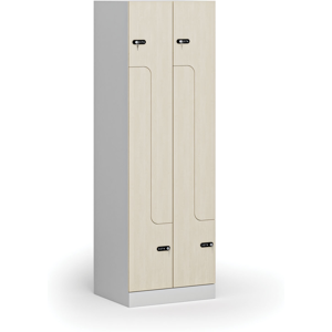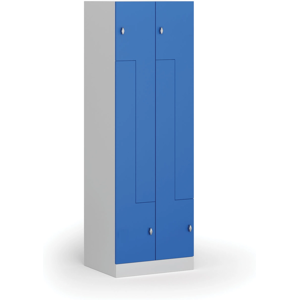 Ganzmetallkonstruktion aus 0,6 mm dickem Stahlblech pulverbeschichtet, Korpus RAL 7035 (grau), Türen je nach Variante Trennwand 300 mm geteilt durch Z-Tür – oberer, unterer Teil, Höhe des Abteils 1000 mm jedes Abteil enthält: 1 Einlegeboden, Stange für Bügel (Tragfähigkeit 5–8 kg) und 3 Kunststoffhaken einwandfreie überlappende verstärkte Tür – größere Zugangsöffnung, überlappt die Seiten des Korpus, Öffnungswinkel bis zu 105° Drehverschluss – Verriegelung mit Vorhängeschloss integrierter Sockel mit einer Höhe von 100 mm – bildet eine kompakte Einheit ohne Lücken Unterbau aus 0,6 mm dickem Stahlblech, lackiert in der Farbe des Korpus Belüftungsöffnungen: hinterer Teil kann zu Baugruppen verbunden werden (Schrauben nicht im Lieferumfang enthalten) Eigenschaften: Türfarbe: grün, Gewicht (kg): 52, Höhe (mm): 1850, Breite (mm): 600, Tiefe (mm): 500, Material: Blech, Maße H x B x T (mm): 1850 x 600 x 500, Korpusfarbe: grau, Schlosstyp: Drehriegel, Anzahl Türen: 4, Türmaterial: Blech, Untergestelltyp: Sockel, Aufbau: zusammengebaut, Korpusmaterial: Blech, Griff: Nein, Montage erforderlich: Nein
