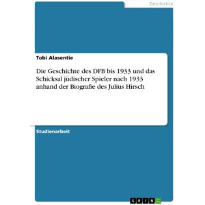 Brand : Grin Verlag, Binding : paperback, Edition : 1., Label : Die Geschichte des DFB bis 1933 und das Schicksal jüdischer Spieler nach 1933 anhand der Biografie des Julius Hirsch, medium : paperback, numberOfPages : 24, publicationDate : 2014-08-19, languages : german, ISBN : 365671486X