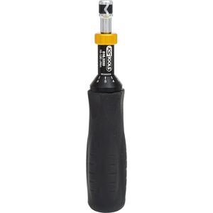 1/4'' Drehmomentschraubendreher, Skale (mechanisch), 10 - 120 cNm. Anlieferung = montiert. Gewicht = 0.23 kg. Anzeigeart = Skale (mechanisch). Auslösegenauigkeit = ±5 %. Durchmesser D1 = 30 mm. Durchmesser D2 = 11 mm. Handgriff = Gummihandgriffe. Länge = 180 mm. Messbereich Nm = 0,1 - 1,2 N·m. Teillänge L2 = 28 mm. Werkzeugaufnahme = Bit. Produkttyp = Drehmomentschraubendreher. Auslösegenauigkeit: ±6 % Toleranz vom eingestellten Skalenwert und besser. Wiederholgenau und präzise bei mindestens 5000 Lastwechseln. Für den kontrollierten Rechts- und Linksanzug. Mit Präzisions-Schraubendruckfeder. Deutlich fühlbare Drehmomentauslösung durch Überratschen. Ein Überziehen des eingestellten Wertes ist unmöglich. Automatische Rückstellung in die Ausgangsposition. Inklusive teilbarer Nm Mikrometerskala für eine feine und präzise Einstellung. Ergonomische Form des Gummihandgriffs zur sicheren Drehmomentübertragung. Innensechskantaufnahme nach DIN 3126 - E 6,3. Individuelle Seriennummer zur deutlichen Produktidentifikation. Inklusive Kalibrier-Konformitätserklärung nach DIN EN ISO 6789:2017(E) - rückführbar auf nationale Normale.
