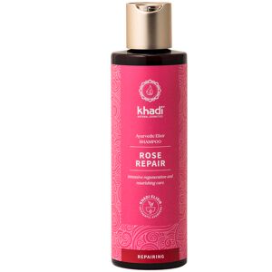 Luxus und Liebe für Ihre Haare: Für intensive Regeneration und reichhaltig nährend bei strapaziertem und trockenem Haar.Khadi Rose Repair Ayurvedisches Elixier Shampoo verhilft Ihrem Haar zu natürlicher Gesundheit und Elastizität. Das Geheimnis der magischen Wirkung beruht auf dem Khadi Rose Repair Elixier. In diesem Ayurvedischen Pflanzenextrakt vereint sich die individuelle Wirkkraft handverlesener indischer Heilkräuter zu einem Ganzen und potenziert sich. Das Khadi Rose Repair Elixier wird nach altüberlieferten Ayurvedischen Rezepturen in einem traditionellen Verfahren schonend über offenem Feuer hergestellt und entfaltet dabei sein reparierendes Wirkungsgeheimnis.Sie spüren bereits während des Haarewaschens, wie Ihr poröses Haar von innen heraus aufgebaut wird. Das Elixier dringt tief in Ihr Haar ein, nährt und repariert es. Sie erleben wohltuende Regeneration und eine luxuriöse Intensivkur für Haare und Kopfhaut.Als Königin der Blüten verwöhnt und pflegt die Damaszener Rose Haare und Kopfhaut. Süßholzwurzel wirkt hochgradig antioxidativ wie ein AntigAging-Booster. Die Superfrucht Amla stärkt die Haarwurzeln. Shikakai durchfeuchtet intensiv und verleiht Ihrem Haar authentische Geschmeidigkeit und gesunden Glanz.Ähnlich wie Ihr Haar und Ihre Kopfhaut besitzt Khadi Rose Repair Ayurvedisches Elixier Shampoo einen pH-Wert von 4,0 bis 5,0 – und bringt so den pH-Wert Ihrer Kopfhaut auf natürliche Weise ins Gleichgewicht. Falls Sie Ihre Haare natürlich färben, z. B. mit Khadi Pflanzenhaarfarbe, empfehlen wir Ihnen im 3-Schritt-Ritual als effektive Vorbereitung das Khadi Rose Repair Elixier Shampoo. Es trägt sichtbar dazu bei, die Leuchtkraft der Farbe zu schützen. Luxus und Liebe für Ihre Haare: Für intensive Regeneration und reichhaltig nährend bei strapaziertem und trockenem Haar.Khadi Rose Repair Ayurvedisches Elixier Shampoo lässt Sie schon während des Haarewaschens die nährende Wirkung auf Ihr Haar und Ihre Kopfhaut spüren. Dabei entfaltet sich die heilende Magie unserer Ayurvedischen Rezeptur. Fühlen Sie, wie sanft die naturkosmetische Shampoo-Basis Ihr Haar reinigt, während das Khadi Rose Repair Elixier seine regenerierende Wirkung entfaltet. Weil das Khadi Rose Repair Shampoo so intensiv nährt, empfehlen wir Ihnen, es im Wechsel mit einem leichteren Shampoo, zum Beispiel dem Khadi Shikakai Elixier Shampoo oder dem frischen Khadi Orange Vitality Elixier Shampoo, zu verwenden.Anwendung: So entfaltet Khadi Rose Repair Elixier Shampoo seine besondere Wirkung: Geben Sie eine Ihrer Haarlänge entsprechende Menge in Ihre Hand und schäume sie mit Wasser auf. Verteilen Sie den samtigen Schaum zur Aktivierung Ihrer Haarwurzeln auf Ihrer Kopfhaut und zur nährenden Pflege in die Haarlängen.Gerne können Sie das Rose Repair Elixier Shampoo einwirken lassen, damit sich die reparierende Pflege voll entfalten kann. Spülen Sie das Rose Repair Elixier Shampoo gründlich mit lauwarmem Wasser aus. Mit der Khadi Auftrageflasche können Sie das Khadi Rose Repair...