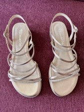Damen Sandalen mit Strass Runde Form Riemchen-Verschluss Flache Sohle Absatzhöhe: 2,5 cm Farbbezeichnung: Light Gold Material: Textil Innensohle: Synthetik Sohle: Synthetik