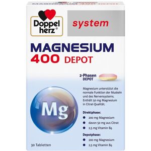 Anwendungsgebiet von Doppelherz Magnesium 400 Depot system TablettenDoppelherz Magnesium 400 Depot system Tabletten bietet eine 2-Phasen-Funktion für die schnelle sowie die Langzeit-Magnesiumversorgung. In einem speziell entwickelten Herstellungsverfahren entsteht eine neuartige Zweischicht-Tablette, die das Magnesium nach und nach an den Körper abgibt. Und dies mit nur einer Tablette täglich. DIREKTPHASE: Die Direktphase liefert 200 mg Magnesium mit einem Citratanteil von 50 mg in Kombination mit 2,5 mg Vitamin B6 DEPOTPHASE: Die Depotphase liefert 200 mg Magnesium zusammen mit 2,5 mg Vitamin B6. Wirkstoffe / Inhaltsstoffe / ZutatenDoppelherz Magnesium 400 Depot system Tabletten enthält: Zutaten: Magnesiumoxid, Magnesiumcitrat, Füllstoff mikrokristalline Cellulose, Füllstoff Dicalciumphosphat, Füllstoff Isomalt, modifizierte Stärke, Trennmittel vernetzte Carboxymethylcellulose, Füllstoff Hydroxypropylmethylcellulose, Füllstoff Polyvinylpyrrolidon, Trennmittel Speisefettsäuren, Farbstoff Eisenoxide und Eisenhydroxide, Trennmittel Magnesiumsalze der Speisefettsäuren, Überzugsmittel Hydroxypropylcellulose, Pyridoxinhydrochlorid, Trennmittel Talkum, Kokosöl pro Tagesportion (= 1 Tablette): Inhaltsstoffe Menge Magnesium 400 mg Vitamin B6 5 mgDosierungVerzehrempfehlung von Doppelherz Magnesium 400 Depot system Tabletten: Täglich 1/2-1 Tablette zu einer Mahlzeit mit ausreichend Flüssigkeit unzerkaut einnehmen. Bei erhöhtem Magnesiumbedarf z.B. aufgrund starker körperlicher Belastung in Verbindung mit einer magnesiumarmen Ernährung, 1 Tablette täglich einnehmen. Liegt lediglich eine unausgewogene Ernährung vor, 1/2 Tablette einnehmen.HinweiseDie empfohlene tägliche Verzehrmenge darf nicht überschritten werden. Nahrungsergänzungsmittel sind kein Ersatz für eine gesunde und ausgewogene Ernährung und sollten außerhalb der Reichweite von Kindern aufbewahrt