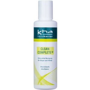 Anwendungsgebiet von Hans Karrer Clean Complete Eco DuschgelHans Karrer Clean Complete Eco Duschgel ist eine extra milde Reinigung für Körper und Hände, die besonders verträglich reinigt. Das Produkt verfügt über einen hautangepassten pH-Wert, um die Hautschädigung selbst bei häufigem Gebrauch zu vermeiden. Hans Karrer Clean Complete Eco Duschgel beinhaltet Glycerin, das der Haut Feuchtigkeit spendet. Panthenol beruhigt die gereizte Haut. Die Formulierung ist frei von Duftstoffen und Betainen.Wirkungsweise von Hans Karrer Clean Complete Eco DuschgelWirkstoffe / Inhaltsstoffe / ZutatenHans Karrer Clean Complete Eco Duschgel enthält:Aqua, Sodium Laureth Sulfate, Sodium Cocoamphoacetate, Coco-Glucoside, Panthenol, Glycol Distearate, Glycerin, Phenoxyethanol, Sorbitan Caprylate, Sodium Chloride, Glyceryl Oleate, Isostearamide MIPA, Citric Acid, Benzoic Acid, Polyquaternium-10, Glyceryl Laurate, Ethylhexylglycerin, Disodium EDTA, Pantolactone, PEG-120 Methyl Glucose Dioleate.GegenanzeigenBei bekannter Überempfindlichkeit gegenüber einem der oben genannten Inhaltsstoffe sollte das Produkt nicht angewendet werden.DosierungAnwendungsempfehlung von Hans Karrer Clean Complete Eco Duschgel:Verwenden Sie die Clean Complete täglich zur sanften und gründlichen Reinigung. Die Behandlung kann bei Bedarf ohne Unterbrechung fortgesetzt werden.Information Hans Karrer Clean Complete Eco Duschgel können in Ihrer Versandapotheke www.juvalis.de erworben werden.
