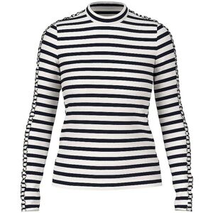 Das Shirt präsentiert sich mit frischen Ringeln für einen maritimen Look. Eyecatcher sind die Mini-Rüschen an den Ärmeln. Durch das bequeme Baumwollstretch-Material ergibt sich ein perfekter Tragekomfort. Das Jersey-Shirt hat lange Ärmel und ist schmal geschnitten. Damen Langarmshirt aus Jersey Rundhalsausschnitt Langarm Farbbezeichnung: Navy Material: 94 % Baumwolle, 6 % Elasthan