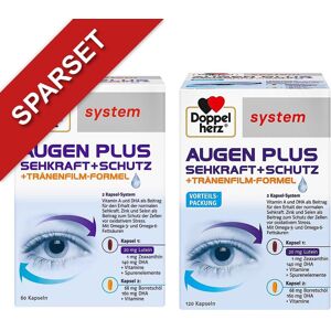 Anwendungsgebiet von Doppelherz system AUGEN PLUS SEHKRAFT + SCHUTZDoppelherz system AUGEN PLUS SEHKRAFT + SCHUTZ enthalten in zwei Kapseln ausgesuchte Vitamine und Spurenelemente sowie mehrfach ungesättigte Fettsäuren für die Nährstoffversorgung der Augen. Kapsel 1 enthält die Vitamine A, C, E, B12 und B6, die Omega-3-Fettsäure DHA sowie die Spurenelemente Selen und Zink. Zusätzlich enthalten sind die Pflanzenstoffe Lutein und Zeaxanthin. Vitamin A trägt zum Erhalt der normalen Sehkraft bei. Nur über den Tränenfilm kann die Hornhaut mit Vitamin A versorgt werden. Zusätzlich unterstützt Vitamin A den Erhalt der Schleimhäute, hierzu zählt auch die Bindehaut des Auges. Auch das Spurenelement Zink leistet einen Beitrag für den Erhalt der normalen Sehkraft. Zink trägt zu einem normalen Vitamin-A-Stoffwechsel bei. Die Omega-3-Fettsäure Docosahexaensäure (DHA) kommt in den Sehzellen der Netzhaut vor und spielt ebenfalls eine Rolle für den Erhalt der normalen Sehkraft. Lutein und Zeaxanthin kommen vor allem in pflanzlichen Lebensmitteln (z. B. grünem Gemüse) vor. Der so genannte „Gelbe Fleck“ der Netzhaut enthält eine hohe Konzentration an Lutein und Zeaxanthin. Der „Gelbe Fleck“ liegt in der Mitte des Augenhintergrundes. Vitamin B6 trägt zu einem normalen Proteinstoffwechsel und zur normalen Funktion des Nervensystems bei. Vitamin B12 leistet einen Beitrag zum Erhalt des normalen Energiestoffwechsels und hat eine Funktion bei der Zellteilung. Das Auge ist durch den Sehprozess und die sich ständig wiederholende Lichteinwirkung in erhöhtem Maße oxidativem Stress ausgesetzt. Aber auch beim normalen Sehprozess entstehen freie Radikale. Um diese freien Radikale abbauen zu können, besitzt der Körper sein eigenes „Schutzsystem“. Die Spurenelemente Zink und Selen sowie die Vitamine C und E tragen dazu bei, die Zellen vor oxidativem Stress zu schützen. Kapsel 2 enthält eine Lipid-Kombination aus mehrfach ungesättigten Omega-3-Fettsäuren