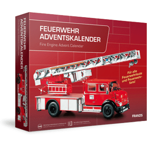 In 24 Tagen zum originalgetreuen Löschfahrzeug Für all diejenigen, die im Feuerwehr Bereich tätig sind – und natürlich alle interessierten Fans – hat FRANZIS jetzt das ideale Geschenk parat. Neben dem Bausatz eines originalgetreuen Löschfahrzeugs im Maßstab 1:43 enthält der Adventskalender ein Begleitbuch, das auf 52 reich bebilderten Seiten interessante Fakten und Geschichten zum Thema Feuerwehrarbeit und -fahrzeuge vermittelt. Bauen Sie sich jetzt Ihre eigene Feuerwehr-szenerie mit dem Metallmodell eines Mercedes-Benz L1519 mit voll beweglicher Drehleiter. Der Adventskalender enthält: • einen mehrteiligen Modellbausatz eines historischen Löschfahrzeugs • ein mehrteiliges Diorama als ideale Kulisse für Ihr Fahrzeugmodell • ein umfangreiches Begleitbuch mit vielen Hintergrundinformationen zu Fahrzeugen und Geräten – für aktive Feuerwehrleute wie für Fans  ...