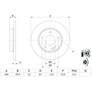 BOSCH Bremsscheibe Außendurchmesser [mm]:235 mm Lochkreis-Ø [mm]:100 mm Bremsscheibenart:Innenbelüftet Mindestdicke [mm]:20 mm Zentrierungsdurchmesser [mm]:55 mm Bremsscheibendicke [mm]:22 mm Lochanzahl:4 Höhe [mm]:46,2 mm erfüllt ECE-Norm:ECE-R90 Bohrungsdurchmesser bis [mm]:13,1 mm Bremsscheibenart:belüftet Oberfläche:geöltPreis pro Stück! Bremsscheiben müssen immer paarweise gewechselt werden. , u.a. für Mazda 323 C V (BA), 1489 cm³, 88 PS (65 kW), 8/1994 bis 9/1998, KBA-Nr: 7118458Mazda 323 S VI (BJ), 1324 cm³, 73 PS (54 kW), 9/1998 bis 1/2001, KBA-Nr: 7118206Mazda 323 S VI (BJ), 1498 cm³, 88 PS (65 kW), 9/1998 bis 1/2001, KBA-Nr: 7118208Mazda 323 F VI (BJ), 1324 cm³, 73 PS (54 kW), 9/1998 bis 1/2001, KBA-Nr: 7118207Mazda 323 F VI (BJ), 1498 cm³, 88 PS (65 kW), 9/1998 bis 1/2001, KBA-Nr: 7118209Mazda 323 F VI (BJ), 1324 cm³, 72 PS (53 kW), 1/2001 bis 5/2004, KBA-Nr: 7118233Mazda 323 F VI (BJ), 1598 cm³, 98 PS (72 kW), 1/2001 bis 5/2004, KBA-Nr: 7118235Mazda 323 S VI (BJ), 1324 cm³, 72 PS (53 kW), 1/2001 bis 5/2004, KBA-Nr: 7118232 , OE-Nummer:FERODO:DDF1104GIRLING:DF4120QUINTON HAZELL:BDC5148ATE:24 0122 0207 1JURID:562022J1FERODO:DDF393QUINTON HAZELL:MBD5148LPR:M5839VHERTH+BUSS ELPARTS:J3303068RAICAM:RD00396REMSA:683410TRW:DF4120NK:203234ROADHOUSE:6834 10FERODO:DDF393CTRW:DF3089TEXTAR:98200 1030MINTEX:MDC1418VALEO:197161QUINTON HAZELL:BSF5148TEXTAR:92103000MINTEX:BDS1937PAGID:50295GIRLING:6041203METELLI:230668CPAGID:52014CAR:142862ZIMMERMANN:370307050DELPHI:BG3508VALEO:186448JURID:562022JCAPEC:DSK303HERTH+BUSS JAKOPARTS:J3303068FERODO:DDF1104XTRUSTING:DF513MINTEX:MDC743PILENGA:V514ZIMMERMANN:370307000TEXTAR:92071500BREMBO:09 7824 10FERODO:DDF11041NK:313234FTE:BS5148ZIMMERMANN:370307020TEXTAR:98200103001BREMBO:RCA1247