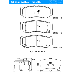 ATE Bremsbelagsatz, Scheibenbremse Verschleißwarnkontakt: für Verschleißwarnanzeiger vorbereitet Breite: 125 mm Abmessungen beachten Artikelnummer des empfohlenen Zubehörs: 24.8190-0213.2 Dicke/Stärke: 16,5 mm Verschleißwarnkontakt: exkl. Verschleißwarnkontakt Bremssystem: ATE Höhe: 37,6 mm MAPP-Code vorhanden:: Menge 1 entspricht einem Satz (4 Bremsbeläge für links UND rechts) , u.a. für BMW 3 (E30), 1766 cm³, 90 PS (66 kW), 9/1983 bis 6/1988, KBA-Nr: 0005500BMW 3 (E30), 1596 cm³, 100 PS (73 kW), 9/1987 bis 6/1991, KBA-Nr: 0005483BMW 3 (E30), 1766 cm³, 102 PS (75 kW), 12/1984 bis 8/1988, KBA-Nr: 0005439BMW 3 (E30), 1766 cm³, 105 PS (77 kW), 9/1982 bis 8/1987, KBA-Nr: 0005427BMW 3 (E30), 1796 cm³, 115 PS (85 kW), 9/1987 bis 6/1991, KBA-Nr: 0005470BMW 3 (E30), 1796 cm³, 113 PS (83 kW), 6/1987 bis 12/1991, KBA-Nr: 0005471BMW 3 (E30), 1796 cm³, 136 PS (100 kW), 9/1989 bis 8/1991, KBA-Nr: 0005487BMW 3 (E30), 1990 cm³, 129 PS (95 kW), 10/1986 bis 4/1991, KBA-Nr: 0005452BMW 3 (E30), 1990 cm³, 125 PS (92 kW), 9/1982 bis 12/1991, KBA-Nr: 0005428BMW 3 (E30), 2316 cm³, 150 PS (110 kW), 9/1983 bis 9/1986, KBA-Nr: 0005433BMW 3 (E30), 2494 cm³, 170 PS (125 kW), 9/1986 bis 8/1991, KBA-Nr: 0005461BMW 3 (E30), 2494 cm³, 170 PS (125 kW), 12/1986 bis 6/1991, KBA-Nr: 0005460BMW 3 (E30), 2494 cm³, 171 PS (126 kW), 3/1986 bis 12/1987, KBA-Nr: 0005449BMW 3 (E30), 2494 cm³, 171 PS (126 kW), 9/1983 bis 11/1989, KBA-Nr: 0005448BMW 3 (E30), 2693 cm³, 122 PS (90 kW), 10/1983 bis 12/1988, KBA-Nr: 0005438BMW 3 (E30), 2693 cm³, 129 PS (95 kW), 1/1985 bis 8/1987, KBA-Nr: 0005459BMW 3 (E30), 2443 cm³, 86 PS (63 kW), 9/1985 bis 12/1990, KBA-Nr: 0005447BMW 3 (E30), 2443 cm³, 115 PS (85 kW), 9/1987 bis 8/1991, KBA-Nr: 0005469BMW 3 (E30), 1796 cm³, 113 PS (83 kW), 4/1989 bis 6/1994, KBA-Nr: 0005486BMW 3 (E30), 1991 cm³, 129 PS (95 kW), 1/1988 bis 12/1991, KBA-Nr: 0005477BMW 3 (E30), 2494 cm³, 170 PS (125 kW), 7/1987 bis 3/1993, KBA-Nr: 0005479BMW 3 (E30), 2494 cm³, 170 PS (125 kW), 6/1988 bis 10/1993, KBA-Nr: 0005481BMW 3 (E30), 2443 cm³, 115 PS (85 kW), 1/1988 bis 6/1993, KBA-Nr: 0005480BMW 3 (E30), 1596 cm³, 100 PS (73 kW), 9/1991 bis 6/1994, KBA-Nr: 0005512BMW 3 (E30), 1796 cm³, 113 PS (83 kW), 9/1990 bis 10/1993, KBA-Nr: 0005496BMW 3 (E30), 1990 cm³, 129 PS (95 kW), 5/1986 bis 11/1993, KBA-Nr: 0005453BMW 3 (E30), 2494 cm³, 170 PS (125 kW), 8/1987 bis 11/1993, KBA-Nr: 0005462BMW 3 (E30), 2494 cm³, 171 PS (126 kW), 12/1985 bis 12/1987, KBA-Nr: 0005454BMW 3 (E30), 1596 cm³, 102 PS (75 kW), 7/1988 bis 6/1991, KBA-Nr: 0005482BMW 3 (E30), 1766 cm³, 90 PS (66 kW), 9/1983 bis 6/1988, KBA-Nr: 0005426BMW 3 (E30), 1766 cm³, 102 PS (75 kW), 8/1987 bis 8/1988, KBA-Nr: 0005439BMW 3 (E30), 1596 cm³, 102 PS (75 kW), 9/1991 bis 6/1994, KBA-Nr: 0005513BMW 3 (E30), 1796 cm³, 115 PS (85 kW), 9/1987 bis 6/1991, KBA-Nr: 0005485BMW 3 (E30), 1990 cm³, 192 PS (141 kW), 5/1988 bis 12/1990BMW 3 (E30), 1596 cm³, 99 PS (73 kW), 9/1987 bis 12/1989 , OE-Nummer:HELLA PAGID:8DB 355 006-501NECTO:FD412HELLA:8DB...