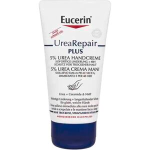 Wirkt intensiv pflegend und befeuchtend, beruhigt die Haut sofort und schützt 48 h vor Trockenheit. Selbst sehr strapazierte Hände fühlen sich wieder glatt und geschmeidig an.Die Hände sind viel häufiger kaltem Wetter, Wasser, Seife und anderen Chemikalien ausgesetzt als der restliche Körper. Dadurch ist die Haut an den Händen wesentlich anfälliger für Trockenheit, Rötungen und Irritationen. Die Eucerin UreaRepair PLUS Handcreme 5 % enthält den einzigartigen, hautverwandten Repair-PLUS-Komplex: Urea und weitere natürliche Feuchthaltefaktoren spenden und binden intensiv Feuchtigkeit und sorgen so für einen gesunden Feuchtigkeitsgehalt der Haut. Zusätzlich stärken Ceramide die physiologische Hautbarriere, damit die Feuchtigkeit nicht entweichen kann.Anwendung: Bei Bedarf mehrmals täglich eine kleine Menge Creme auf die Hand geben. Sanft in die Hände einmassieren, bis die Creme vollständig aufgenommen ist. Die Haut ist Faktoren wie Wetter, aggressiver Reinigungspflege und natürlicher Alterung ausgesetzt. Das kann zu Feuchtigkeitsverlust und somit zu Symptomen trockener Haut führen: Die Haut fühlt sich unangenehm rau an, spannt, juckt oder neigt zu Schuppenbildung.Die Produkte der UreaRepair Pflegeserie sind angereichert mit Urea (Harnstoff) und weiteren natürlichen Feuchthaltefaktoren (Natural Moisturing Factor = NMF) – für eine intensive Versorgung mit Feuchtigkeit. Eucerin UreaRepair PLUS lindert dank einzigartigem Repair-PLUS-Komplex sofort die Anzeichen trockener Haut und bietet 48 h lang anhaltenden Schutz. Eucerin UreaRepair ORIGINAL bietet Ihnen die bewährte und reichhaltige Urea-Pflege.Alle Produkte sind dermatologisch getestet und auch ideal zur Pflege trockener Haut im Alter sowie therapiebegleitend bei verschiedenen Krankheiten wie Keratosis pilaris oder Diabetes geeignet.