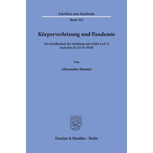 Binding : paperback, Edition : 1, Label : Körperverletzung und Pandemie : Die Strafbarkeit der Infektion mit SARS-CoV-2 nach den §§ 223 ff. StGB (Schriften zum Strafrecht), medium : paperback, numberOfPages : 329, publicationDate : 2025-03-19, languages : german, ISBN : 342819327X