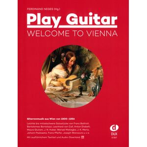 Edition Dux Play Guitar – Welcome to Vienna: Gitarrenmusik aus Wien von 1800 bis 1856, 42 klassische Stücke für Akustikgitarre, herausgegeben von Ferdinand Neges, leichter bis mittlerer Schwierigkeitsgrad, ISBN 9783868494020, ISMN 9790500175759, D 3517, 23 x 30 cm, 68 Seiten, inkl. Audio-Download mit Demoversionen