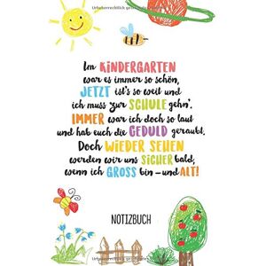 Binding : paperback, Label : Im Kindergarten war es immer so schön ~ Gedicht zum Abschied : A5 Notizbuch 120 Seiten liniert als Geschenk Abschiedsgeschenk für Erzieherin, ... Kindergartenjahr, Einschulung und Danke sagen, medium : paperback, publicationDate : 2019-07-14, languages : german, ISBN : 1080546073