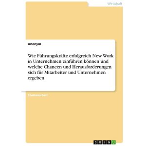 Binding : paperback, Edition : 1., Label : Wie Führungskräfte erfolgreich New Work in Unternehmen einführen können und welche Chancen und Herausforderungen sich für Mitarbeiter und Unternehmen ergeben, medium : paperback, numberOfPages : 32, publicationDate : 2025-07-02, languages : german, ISBN : 3389140883