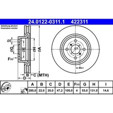 ATE Bremsscheibe Außendurchmesser [mm]:280,0 mm Prüfzeichen:E1 90R-02C0115/1125 Zentrierungsdurchmesser [mm]:55,0 mm Mindestdicke [mm]:20,0 mm MAPP-Code vorhanden Bremsscheibendicke [mm]:22,0 mm Innendurchmesser [mm]:131,0 mm Lochanzahl:4 Oberfläche:beschichtet Lochkreis-Ø [mm]:100,0 mm Höhe [mm]:46,2 mm Bohrung-Ø [mm]:14,6 mm Bremsscheibenart:belüftetPreis pro Stück! Bremsscheiben müssen immer paarweise gewechselt werden! , u.a. für Toyota Yaris (P13), 1497 cm³, 75 PS (55 kW), ab 3/2012, KBA-Nr: 5013AHVToyota Yaris (P13), 1497 cm³, 73 PS (54 kW), ab 4/2015, KBA-Nr: 5013AJSToyota Yaris (P13), 1496 cm³, 112 PS (82 kW), ab 3/2017, KBA-Nr: 5013ALGToyota Yaris (P13), 1496 cm³, 111 PS (82 kW), ab 3/2017 , OE-Nummer:HERTH+BUSS JAKOPARTS:J3302199BREMBO:09.D573.11BOSCH:0 986 479 E37MINTEX:MDC2763HELLA:8DD 355 125-491FTE:BS7828BTEXTAR:92287603REMSA:61656.10DELPHI:BG4762CNIPPARTS:N3302197HELLA PAGID:8DD 355 125-491ZIMMERMANN:590.2831.52NK:3145178ZIMMERMANN:590.2831.20ROADHOUSE:61656.10