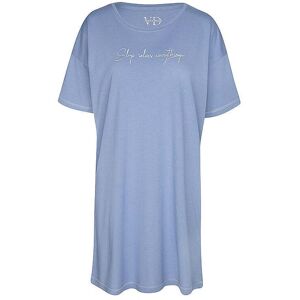 Vivance Dreams Kurzärmliges Bigshirt von Vivance Dreams. Mit schönem Frontprint. Klassischer Rundhalsausschnitt. Trageangenehme Qualität aus Baumwolle und Viskose. Damen Sleepshirt aus bequemer Viskose-Baumwoll-Mischung Rundhalsausschnitt Überschnittener Kurzarm Wording-Print auf der Brust Gerade Passform Knieumspielende Länge Farbbezeichnung: Blue Material: 50% Baumwolle, 50% Viskose