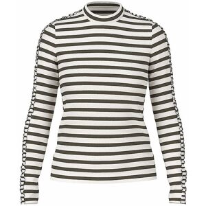 Das Shirt präsentiert sich mit frischen Ringeln für einen maritimen Look. Eyecatcher sind die Mini-Rüschen an den Ärmeln. Durch das bequeme Baumwollstretch-Material ergibt sich ein perfekter Tragekomfort. Das Jersey-Shirt hat lange Ärmel und ist schmal geschnitten. Damen Langarmshirt aus Jersey Rundhalsausschnitt Langarm Ringelmuster Farbbezeichnung: Olive Drab Material: 94 % Baumwolle, 6 % Elasthan