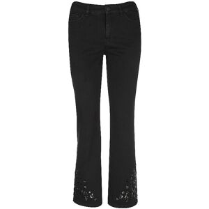 Das Modell FORLI setzt mit einem kunstvoll bestickten und paillettenbesetzten Fransensaum ein funkelndes Highlight. Die Jeans präsentiert sich im klassischen Five-Pocket-Design mit femininer Passform und leicht ausgestelltem, verkürztem Beinabschluss. Dank softem Baumwollstretch trägt sie sich besonders angenehm und bequem. FORLI wird verantwortungsvoll gefertigt und ist mit dem Nachhaltigkeitslabel Rethink Together ausgezeichnet. Damen Jeans aus Baumwoll-Stretch Mittlere Leibhöhe Schließt mit Knopf- und Reißverschluss 5-Pocket-Style 7/8 Länge Fransensaum Unifarben Farbbezeichnung: Black Material: 91% regenerative Baumwolle, 7% Elastomultiester, 2% Elasthan