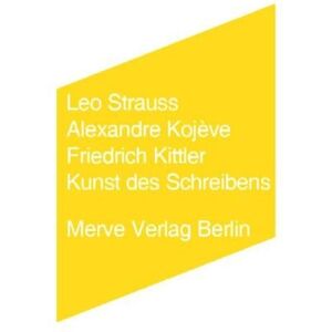 Binding : Broschiert, Edition : 1., 01.10.2009, Label : Merve, Publisher : Merve, medium : Broschiert, numberOfPages : 104, publicationDate : 2009-09-01, authors : Friedrich Kittler, Alexandre Kojève, Leo Strauss, translators : Peter Geble, publishers : Andreas Hiepko, languages : german, ISBN : 3883962503