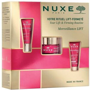 NUXE Merveillance Set Im Set enthalten: Merveillance Lift; Pudrige Creme mit Lifting-Effekt 50 ml Merveillance Lift Lifting Augencreme 15 ml Merveillance Lift Die Konzentrierte Nachtcreme 15 ml Das festigende; liftende Pflegeritual Merveillance Lift zur Reduzierung von Falten und zum Straffen der Haut. Die Kombination aus Anti-Aging-Wirksamkeit und ultimativem Genuss in diesem Anti-Aging Merveillance Lift-Set: - Merveillance Lift Pudrige Lifting-Creme 50 ml - Merveillance Lift Lifting-Augencreme 15 ml - Merveillance Lift Konzentrierte Nachtcreme 15 ml In Frankreich formulierte und hergestellte Pflegeprodukte. In Frankreich hergestellt; Box aus 100 % Pappe; 0 % Kunststoff. Lift = Lifting-Wirkung Anwendung: Merveillance Lift; Pudrige Creme mit Lifting-Effekt 50 ml Entnehmen Sie eine haselnussgroße Menge der Tagescreme; erwärmen Sie sie zwischen den Händen und tragen Sie die Creme dann mit beiden Händen auf dem Gesicht auf; immer von der Mitte nach außen (dabei die Augenkonturen aussparen). Gönnen Sie Ihrem Hals und Dekolleté auch etwas davon. - Massieren Sie die Creme so lange ein; bis sie vollständig eingezogen ist. Für einen strahlend schönen Teint mit leichten Klopfbewegungen (mit den Fingerspitzen) auf dem gesamten Gesicht abschließen. Perfekt für eine Anwendung morgens und/oder abends nach Ihrem Serum von Nuxe. Merveillance Lift Lifting Augencreme 15 ml Geben Sie 2 Reiskörner-große Kleckse der Augencreme auf Ihre Zeigefinger und verteilen Sie die Creme unterhalb Ihrer Augen hin zur Oberkante des Wangenknochen. - Den Zeigefinger am inneren Augenwinkel ansetzen und 3 glättende Massagebewegungen von innen hin zum äußeren Augenwinkel machen. Wiederholen Sie dies dreimal ohne zusätzliche Creme unter dem Augenbrauenbogen (sparen Sie die Augenlider aus). - Anschließend mit kreisförmigen Bewegungen im Bereich der Krähenfüße weiter einmassieren. Mit leichten Klopfbewegungen mit den Fingerspitzen abschließen; um die Augenkonturen zu entschlacken. Idealerweise morgens und abends. Merveillance Lift Die Konzentrierte Nachtcreme 15 ml Wärmen Sie eine haselnussgroße Menge der Nachtcreme zwischen den Handflächen und tragen Sie sie dann mit den Händen von der Mitte nach außen auf Ihr Gesicht auf (vermeiden Sie dabei die Augenkonturen). Gönnen Sie Ihrem Hals und Dekolleté auch etwas davon. - Massieren Sie die Creme so lange ein; bis sie vollständig eingezogen ist. Legen Sie abschließend Ihre Hände sanft auf beide Wangen; dann auf Stirn; das Kinn und dann in die Mitte (um die Nase herum). - Genießen Sie dabei den angenehmen Duft der Creme und gönnen Sie sich vor dem Schlafengehen einen Moment der Entspannung. Abends am besten nach Ihrem Serum von Nuxe auftragen. Inhaltsstoffe: Merveillance Lift pudrige Creme: AQUA/WATER; SQUALANE; GLYCERIN; 2;3-BUTANEDIOL; MACADAMIA INTEGRIFOLIA SEED OIL; SODIUM POLYACRYLATE; ARACHIDYL ALCOHOL; CETEARYL ALCOHOL; BEHENYL ALCOHOL; PARFUM/FRAGRANCE; ETHYLHEXYLGLYCERIN; ARACHIDYL GLUCOSIDE; PHENETHYL ALCOHOL; SODIUM STEAROYL...