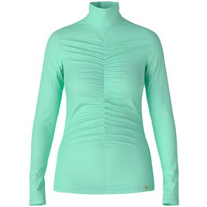 Damen Shirt aus weichem Jersey Rollkragen  Langarm  Vertikale Vordernaht mit Kräusel-Details Schmale Passform  Unifarben  Farbbezeichnung: Soft Malachite  Material: 87% Polyamid, 13% Elastan
