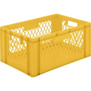 Euro-Format-Stapelbehälter, Wände durchbrochen, Boden geschlossen, LxBxH 600 x 400 x 145 mm, grün, VE 5 Stk. Anlieferung = montiert. Volumen = 26 Liter. Länge = 600 mm. Breite = 400 mm. Höhe = 145 mm. Farbe = grün. Material = Polypropylen (PP). Gewicht = 5.7 kg. Temperaturbeständigkeit = -20 °C bis +60 °C. Ausführung Stapelbehälter = Wände durchbrochen, Boden geschlossen. Innenbreite = 352 mm. Innenlänge = 551 mm. Innenhöhe = 133 mm. Eigenschaft = stapelbar. Materialeigenschaft = lebensmittelecht. Traglast = 35 kg. Auflast = 400 kg. Für nahezu jeden Bedarf im Lager, in der Produktion und beim Transport. Größen auf Palettenmaße 1200 x 800 mm und 800 x 600 mm abgestimmt. Hohe Stabilität. Temperaturbeständig von -20 °C bis +60 °C, kurzzeitig bis +90 °C. Beständig gegen viele Säuren und Laugen. Aus hochwertigem, lebensmittelechtem Polypropylen. Rollenbahngeeignet. Auch mit Deckel problemlos stapelbar. Die Behälter erhalten Sie in preisgünstigen Verpackungseinheiten. Heißprägedruck auf Anfrage.