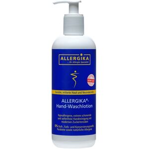 Die ALLERGIKA®-Hand-Waschlotion ist speziell entwickelt, um eine sehr gute Hautverträglichkeit und schonende Reinigungswirkung zu gewährleisten. Dank moderner Zuckertenside und einem hautneutralen pH-Wert bleibt der Fett- und Feuchtigkeitsgehalt der Haut im Gleichgewicht. Diese Hand-Waschlotion ist ideal für Menschen mit Handekzemen, Kontaktallergien, irritativen Handekzemen oder Schuppenflechte an den Händen. Die Formulierung ist frei von Seide und bekannten allergenisierenden Substanzen wie Cocamidopropylbetain, die häufig in herkömmlichen Reinigungsprodukten enthalten sind. Sie wurde dermatologisch-allergologisch an allergischer Haut klinisch getestet und ist frei von Duft-, Farb- und Konservierungsstoffen, Parabenen, natürlichen Allergenen sowie den 328 häufigsten allergieauslösenden Stoffen der Deutschen Kontaktallergie-Gruppe (DKG). Die ALLERGIKA®-Hand-Waschlotion wird von Dermatologen empfohlen und ist speziell für die Anwendung auf den Händen konzipiert. Sie eignet sich besonders für die Therapie von trockenen Ekzemen und bietet eine sanfte Pflege für empfindliche Haut. Sehr gute Hautverträglichkeit und schonende Reinigungswirkung durch moderne Zuckertenside und hautneutralen pH-Wert. Ideal bei Hautproblemen wie Handekzemen, Kontaktallergien, irritativen Handekzemen und Schuppenflechte an der Hand. Frei von allergenisierenden Substanzen wie Cocamidopropylbetain und Seide. Dermatologisch-allergologisch getestet an allergischer Haut. Frei von Duft-, Farb- und Konservierungsstoffen, Parabenen, natürlichen Allergenen und den 328 häufigsten allergieauslösenden Stoffen der DKG. Anwendung: Schäumen Sie die Menge etwa eines Pumpstoßes mit etwas Wasser auf und verteilen Sie den Reinigungsschaum auf den Handflächen und Handinnenseiten sowie Fingerzwischenräumen. Anschließend sorgfältig abspülen, abtrocknen und die Hände mit ALLERGIKA®-Softhandcreme eincremen. Inhaltsstoffe: Aqua, Sodium Laureth Sulfate, Lauryl Glucoside, PEG-18 Glyceryl Oleate/Cocoate, Sodium Chloride, Caprylyl Glycol, PEG/PPG-14/4 Dimethicone, Glycol Distearate, Steareth-4, Citric Acid, p-Anisic Acid