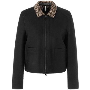 Hochwertige Jacke aus 100 % Schurwolle in Walkqualität – Knitted in Germany. Mit Zwei-Wege-Zipper und abgesteppter Eingriffstasche. Der wattierte Kragen mit Leoprint setzt einen stilvollen Akzent. Ein eingenähtes Gummiband am Rücken formt die Silhouette dezent. Warm, bequem und modisch zugleich. Die Jacke wird am Standort Deutschland gestrickt und auch veredelt. Die Weiterverarbeitung der einzelnen Teile erfolgt in europäischen Partnerbetrieben. Damit ist das Modell „Knitted in Germany“. Damen Jacke aus Walk Langarm Lockerer Schnitt Knitted in Germany Zwei-Wege-Zipper Hüftlang Farbbezeichnung: Black Material: 100% Schurwolle