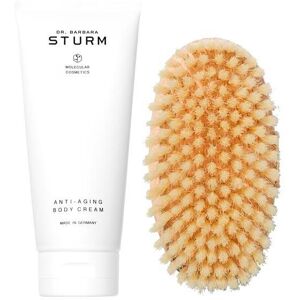 Das Dr. Barbara Sturm Anti Cellulite Körperpflege Duo Set beinhaltet: 1 x Dr. Barbara Sturm Anti-Aging Body Cream, 200 ml1 x Dr. Barbara Sturm Body Brush Soft, 1 Stück Dr. Barbara Sturm Anti-Aging Body Cream: Dr. Barbara Sturms reichhaltige Anti-Aging Body Cream ist eine hochwirksame und verjüngende Pflege für den ganzen Körper. Ihre Rezeptur basiert auf wertvollen, nährstoffreichen Ölen, entzündungshemmenden, regenerativen Wirkstoffverbindungen und speziellen Extrakten, die das Bindegewebe straffen. Die Creme zieht schnell ein und schenkt der Haut langanhaltend Feuchtigkeit und einen strahlend frischen Look. Traubenkernöl und Sheabutter nähren und pflegen, während wertvolle Extrakte aus indischer Mandel und Holunderblüte die Haut festigen. Der eingesetzte Serienwirkstoff Purslane ist reich an wertvollen Antioxidantien, aktiviert das hauteigene Antioxidans-System und schützt die empfindlichen Zellmembranen vor dem Angriff Freier Radikale. Reines Gletscherwasser erfrischt die Haut. Die Body Cream verwöhnt mit einem sanft-zarten Duft. Anwendung: Tragen Sie die Body Cream in kreisenden Bewegungen auf. Leicht in die Haut massiert, können sich ihre Wirkstoffe besonders gut entfalten. Dr. Barbara Sturm Body Brush Soft: Orangenhaut ist für viele Frauen ein Thema. Idealerweise begegnet man den ungeliebten Dellen mit einer ganzheitlichen Therapie, welche Sport, Ernährung und eine gezielte Aktivierung des Gewebestoffwechsels durch manuelle Therapien mit einschließt. Fettdepots in den weiblichen Körperzonen, die häufig von Cellulite betroffen sind, wie z. B. Oberschenkeln, Bauch und Po, behindern den Transport von Gewebewasser und Lymphe. Dadurch werden Dellen verursacht. Bürstenmassagen als Cellulite Behandlung sind eine wirksame Anwendung für zu Hause. Sie fördern die Durchblutung und den Lymphfluss im Gewebe und aktivieren damit den Abtransport von Schlacken. Die Anti Cellulite Bürste ist mit reinen Naturborsten besteckt. Sie kann sowohl zur Trockenmassage als auch unter der Dusche verwendet werden. Eine Massage in trockenem Zustand wirkt intensiver, in Verbindung mit Wasser ist sie schonender für die Haut. Beide Massagen sind wirksam, um den Stoffwechsel im Gewebe in Schwung zu bringen, mit straffendem und auch präventivem Effekt bei regelmäßiger Anwendung. So kann der Entstehung von Orangenhaut auch vorgebeugt werden. Die Anti Cellulite Bürste gibt es in zwei Borstenstärken, weich und mittel. Bei sehr empfindlicher Haut bzw. druckempfindlicher Haut empfehlen wir die weichere Variante. Anwendung: Grundsätzlich gilt: Beginnen Sie bei den Extremitäten (am weitesten vom Herzen entfernt) und massieren in Richtung Körpermitte (zum Herzen). Bürste Sie mit leichtem Druck in langsamen, gleichförmigen Streichbewegungen zum Herzen hin. Starten Sie mit der Vorder- und Rückseite des rechten Fußes hin zum Unterschenkel. Bürsten Sie dann vom Unterschenkel zum Oberschenkel und weiter bis zur rechten Pohälfte. Streichen Sie nun die linke Seite (Fuß- Unter- und...