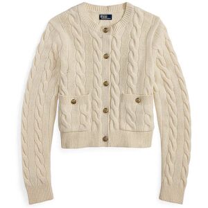 Damen Strickjacke aus einer weichen Mischung aus italienischer Wolle und kardiertem Kaschmir Gerippter Rundhalsausschnitt Knöpfe vorne mit unserem charakteristischen gestickten Pony auf der Brust Lange Ärmel mit Rippenstrick-Manschetten Strickmuster Logo-Detail auf der Brust Slim Fit: Figurbetonte Passform, endet auf Hüfthöhe Farbbezeichnung: Authentic Cream Material: 80% Wolle, 20% Kaschmir