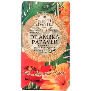 De Ambra Papaver: Ein opulenter Duft mit Amber und rotem Mohn, der seit der Antike für seine entspannenden und beruhigenden Tugenden bekannt ist.Luxuriöse Wellness-Seifen mit wertvollen Inhaltsstoffen und wundervollen Düften. Das Geheimnis liegt in der sorgfältigen, traditionellen Herstellung nach alter Handwerkstradition und der Zusammenstellung von Inhaltsstoffen und Düften. Dreifach gemahlene Natur-Pflanzenseife, die seltene und edle Rohstoffe mit raffinierten und edlen Ölen kombiniert. Der langsame Prozess des Kochens im großen Kessel mit Rücksicht auf das empfindliche Gleichgewicht vergrößert die Düfte, die zum Körper und zur Persönlichkeit jedes Menschen passen.Anwendung: Die nasse Haut gründlich einseifen und mit klarem Wasser abspülen.