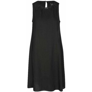 Damen Kleid aus hochwertigem Leinen-Mix Rundhalsausschnitt mit Logoapplikation  Ohne Arm  Unifarben  Seitliche Eingriffstaschen  Lockere Passform  Knieumspielende Länge Farbbezeichnung: Black   Material: 62% Leinen 35% Viskose 3% Elasthan