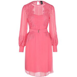 Elegantes Damen Kleid mit Volantbesatz im Vorderteil Rundhalsausschnitt Schließt mit Reißverschluss in der hinteren Mitte 3/4 Ärmel Gerade Passform Länge: Ca. 112 cm Farbbezeichnung: Rapture Rose Material: 85% Polyester, 15% Elasthan