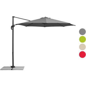 Das Alu/Stahl-Gestell ist anthrazitgrau pulverbeschichtet und passt somit optisch sehr gut zur Bespannung Der Schirm verfügt über ein massives Drehgelenk mit Fußpedal Der Handgriff mit integrierter Kurbel ermöglicht sowohl ein komfortables und leichtes Öffnen und Schließen des Schirmes, als auch eine individuelle Einstellung der Dachneigung Durch Betätigen des Fußpedals am Drehgelenk lässt sich der Schirm zudem um 360° drehen Der Ampelschirm wird zusätzlich inkl. einer lichtundurchlässigen Schutzhülle mit Reißverschluss und Stab geliefert Nur für den privaten Gebrauch im Außenbereich Zur Verwendung auf Dachterrassen oder an ähnlich windexponierten Standorten nicht geeignet! Farben: apfelgrün ; rot, natur, anthrazit Material Bespannung: 100 % Polyester Gestell: Aluminium Maße ca. L 360 x B 300 x H 244 cm Schirmdurchmesser: ca. 300 cm Gewicht ca. 17,4 kg Lieferumfang 1x Ampelschirm, 1x lichtundurchlässige Schutzhülle; 1x Plattenständer für Wegeplatten 50 x 50 x 5 cm (Lieferung ohne Platten)