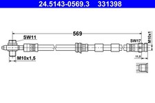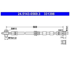 ATE Bremsschlauch Ergänzungsartikel/Ergänzende Info 2: mit Hohlschraube Gewindemaß: M10x1,5 Länge: 569 mm internal_thread_mm_432: Innengewinde: M10x1 mm spanner_size_2_mm_3754: Schlüsselweite 2: 17 mm spanner_size_1_mm_3753: Schlüsselweite 1: 11 mm MAPP-Code vorhanden:: Preis pro Stück! Bremsschläuche sollten immer paarweise gewechselt werden. , u.a. für VW Golf IV (1J1), 1896 cm³, 90 PS (66 kW), 7/1998 bis 4/2002, KBA-Nr: 0603461VW Golf IV (1J1), 1781 cm³, 125 PS (92 kW), 5/1998 bis 6/2005, KBA-Nr: 0603463Audi A3 (8L1), 1781 cm³, 180 PS (132 kW), 10/1998 bis 5/2003, KBA-Nr: 0588703VW Golf IV (1J1), 2792 cm³, 204 PS (150 kW), 3/1999 bis 6/2005, KBA-Nr: 0603530Audi A3 (8L1), 1781 cm³, 210 PS (154 kW), 3/1999 bis 4/2002, KBA-Nr: 0588704Audi A3 (8L1), 1781 cm³, 150 PS (110 kW), 12/1996 bis 5/2003, KBA-Nr: 0588701Skoda Octavia II (1U5), 1896 cm³, 90 PS (66 kW), 11/1999 bis 2/2006, KBA-Nr: 8004338VW Bora (1J2), 2792 cm³, 204 PS (150 kW), 3/1999 bis 5/2005, KBA-Nr: 0603528VW Golf IV (1J1), 2324 cm³, 150 PS (110 kW), 12/1998 bis 10/2000, KBA-Nr: 0603497VW Bora (1J2), 1781 cm³, 125 PS (92 kW), 2/1999 bis 5/2005, KBA-Nr: 0603500VW Bora (1J2), 2324 cm³, 150 PS (110 kW), 12/1998 bis 10/2000, KBA-Nr: 0603501VW Bora (1J2), 1896 cm³, 90 PS (66 kW), 11/1998 bis 4/2002, KBA-Nr: 0603502VW Bora (1J6), 2324 cm³, 150 PS (110 kW), 5/1999 bis 10/2000, KBA-Nr: 0603508VW Bora (1J6), 1896 cm³, 115 PS (85 kW), 5/1999 bis 6/2001, KBA-Nr: 0603509VW Golf IV (1J5), 1896 cm³, 90 PS (66 kW), 5/1999 bis 4/2002, KBA-Nr: 0603511Seat Leon (1M1), 1781 cm³, 180 PS (132 kW), 11/1999 bis 6/2006, KBA-Nr: 7593483VW Bora (1J2), 1896 cm³, 115 PS (85 kW), 2/1999 bis 6/2001, KBA-Nr: 0603504VW Bora (1J6), 1781 cm³, 125 PS (92 kW), 5/1999 bis 5/2005, KBA-Nr: 0603506VW Bora (1J6), 2792 cm³, 204 PS (150 kW), 5/1999 bis 5/2005, KBA-Nr: 0603529VW Golf IV (1J5), 2324 cm³, 150 PS (110 kW), 5/1999 bis 6/2006, KBA-Nr: 0603512VW Golf IV (1J5), 1781 cm³, 125 PS (92 kW), 5/1999 bis 6/2006, KBA-Nr: 0603510VW Golf IV (1J5), 2792 cm³, 204 PS (150 kW), 5/1999 bis 6/2006, KBA-Nr: 0603531VW Golf IV (1J5), 1896 cm³, 115 PS (85 kW), 5/1999 bis 6/2001, KBA-Nr: 0603513VW Golf IV (1J1), 1896 cm³, 115 PS (85 kW), 9/1999 bis 6/2001, KBA-Nr: 0603499Skoda Octavia II (1U2), 1781 cm³, 180 PS (132 kW), 5/2001 bis 1/2006, KBA-Nr: 8004357Skoda Octavia II (1U5), 1896 cm³, 100 PS (74 kW), 9/2000 bis 1/2006, KBA-Nr: 8004359VW Golf IV (1J1), 1896 cm³, 101 PS (74 kW), 9/2000 bis 6/2005, KBA-Nr: 0603559VW Golf IV (1J1), 1896 cm³, 150 PS (110 kW), 2/2000 bis 6/2005, KBA-Nr: 0603573VW Golf IV (1J5), 1896 cm³, 101 PS (74 kW), 9/2000 bis 6/2006, KBA-Nr: 0603561VW Bora (1J2), 1896 cm³, 101 PS (74 kW), 9/2000 bis 5/2005, KBA-Nr: 0603563VW Bora (1J2), 1896 cm³, 150 PS (110 kW), 5/2000 bis 5/2005, KBA-Nr: 0603575VW Bora (1J6), 1896 cm³, 101 PS (74 kW), 9/2000 bis 5/2005, KBA-Nr: 0603565VW Golf IV (1J1), 2324 cm³, 170 PS (125 kW), 10/2000 bis 6/2005, KBA-Nr: 0603594VW Bora (1J2), 2324 cm³, 170 PS (125 kW), 10/2000 bis 5/2005, KBA-Nr:...