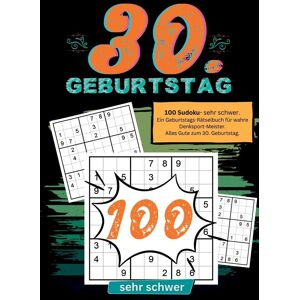 Binding : paperback, Label : 30. Geburtstag- Sudoku Geschenkbuch : 100 Sudoku- sehr schwer. Ein Geburtstags-Rätselbuch für wahre Denksport-Meister. Alles Gute zum 30. Geburtstag., medium : paperback, numberOfPages : 58, publicationDate : 2024-05-21, languages : german, ISBN : 3384234677
