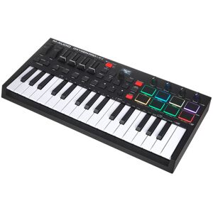 M-Audio Oxygen Pro Mini; USB Controller Keyboard; 32 halbgewichtete anschlagdynamische Mini-Tasten; 8 anschlagsdynamische RGB-Pads; Note Repeat Funktion; 4 Fader und Drehregler; Smart Chord Modus; Smart Scale Modus; Arpeggiator; Transport und Navigations Tasten; Pitch- und Modulationsräder; Sustain-Pedaleingang (6,3mm Klinke); USB-MIDI Verbindung und MIDI-Ausgang (3,5 mm Klinke, Typ A); OLED Display; inklusive Softwarepaket (Downloads): Ableton Live Lite, Mini Grand, Velvet, Hybrid 3, Touch Loops, MPC Beats; Abmaße (L x B x H): 401 x 191 x 65 mm; Gewicht: 1,2 kg