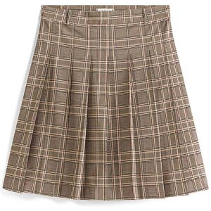 Damen Minirock aus Viskose-Mix Bindegürtel an der Taille Schließt mit Reißverschluss auf der Seite Ausgestellte Passform Karomuster Knieumspielende Länge Farbbezeichnung: Brown Material: 62 % Polyester, 33 % Viskose, 5 % Elasthan