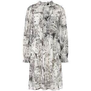 Knielanges Kleid aus recycelter Kunstfaser mit künstlerischem Urban-Print. Fließender Stoff, unterfüttert für Blickdichte, mit Smokdetails, feinen Rüschen und schwingendem Rockteil. Der Gummizug in der Taille betont die Silhouette. Leicht und modern – perfekt für stilvolle Auftritte. Damen Kleid Schwingendes Rockteil Gummizug zur Taillenbetonung Mini-Rüschen Mit Innenfutter Knieumspielende Länge Farbbezeichnung: Smoke Material: 100% Polyester